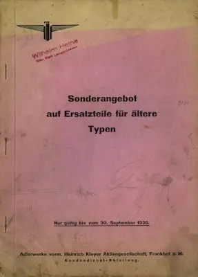 Adler Sonderanbot auf Ersatzteile 9.1936