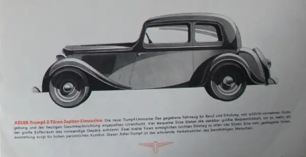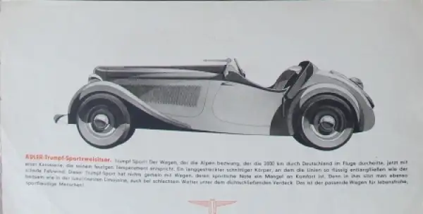 Adler Trumpf 1,7 Liter Modellprogramm 1934 Reuters Motive Automobilprospekt (6544)