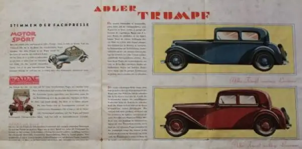 Adler Trumpf Modellprogramm 1933 Reuters Motive Automobilprospekt (3487)