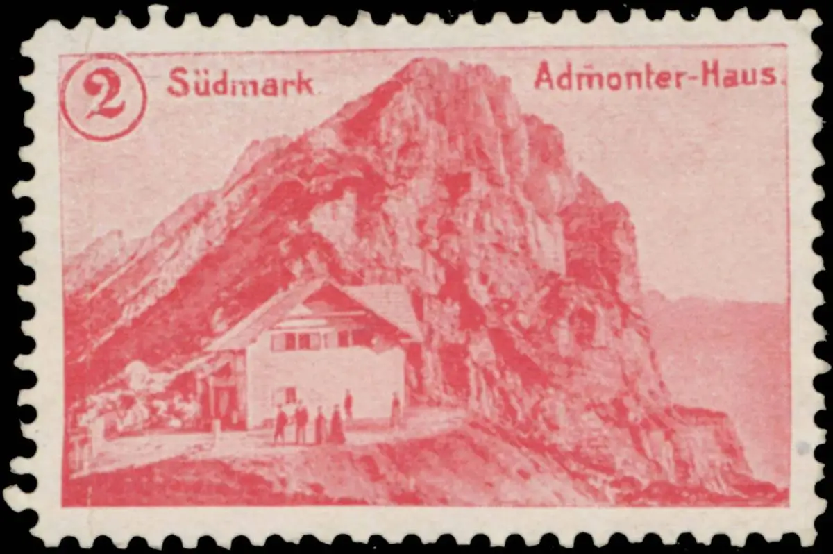 Schutzhütte, Steiermark, Berge, wandern, Spendenmarke, rot, Größe/Zustand: 3x4 , guter Zustand, Original alte Reklamemarke die seinerzeit für die Werbung benutzt wurde