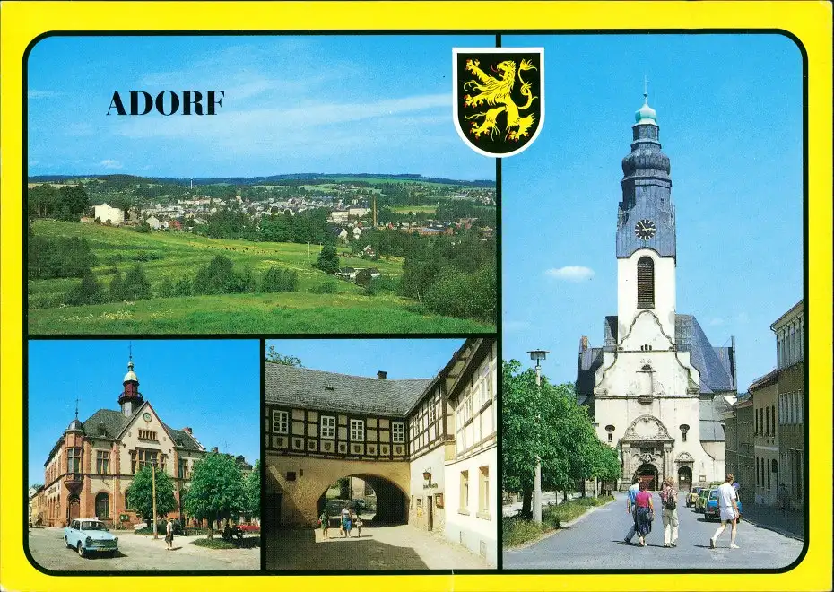 Adorf (Vogtland) Übersicht, Michaeliskirche, Rathaus, Freiberger Tor 1993