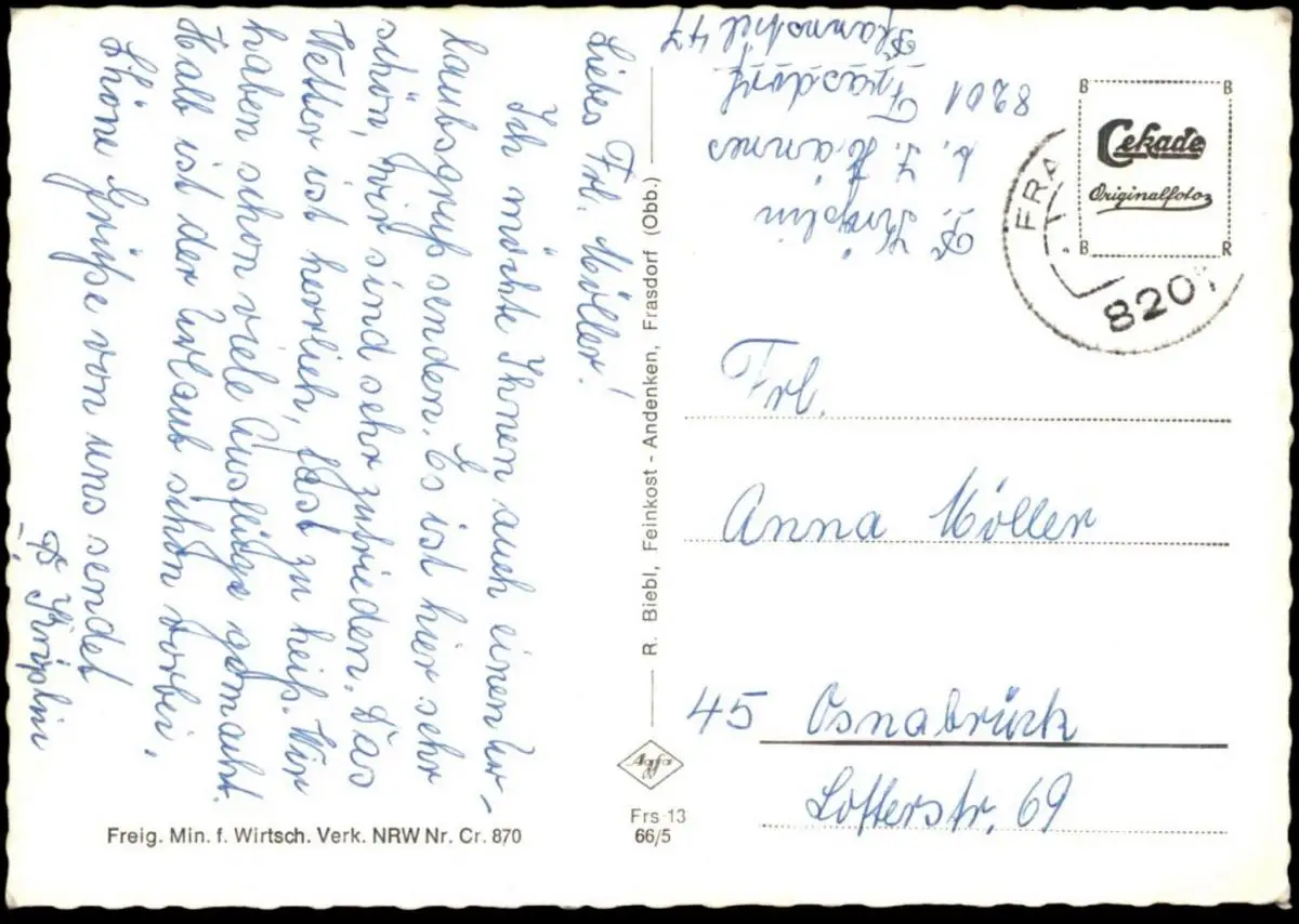 Verlag: R. Biebl, Feinkost - Andenken, Frasdorf; Cekade