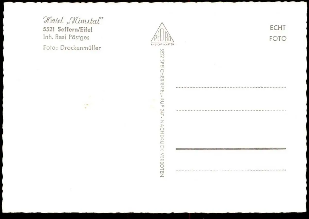 ÄLTERE POSTKARTE HOTEL NIMSTAL SEFFERN EIFEL INH. RESI PÖSTGESVerlag: Pedro Ansichtskarten, Foto Drockenmüller
