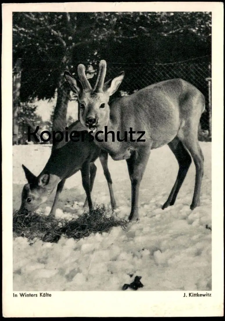 ÄLTERE POSTKARTE IN WINTERS KÄLTE REHE J. KITTKEWITZ Hirsch Reh Hirsche Roe fallow deer daim chevreuil cerf hiver Winter