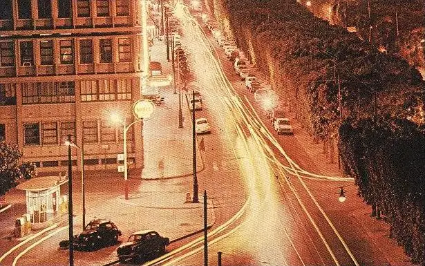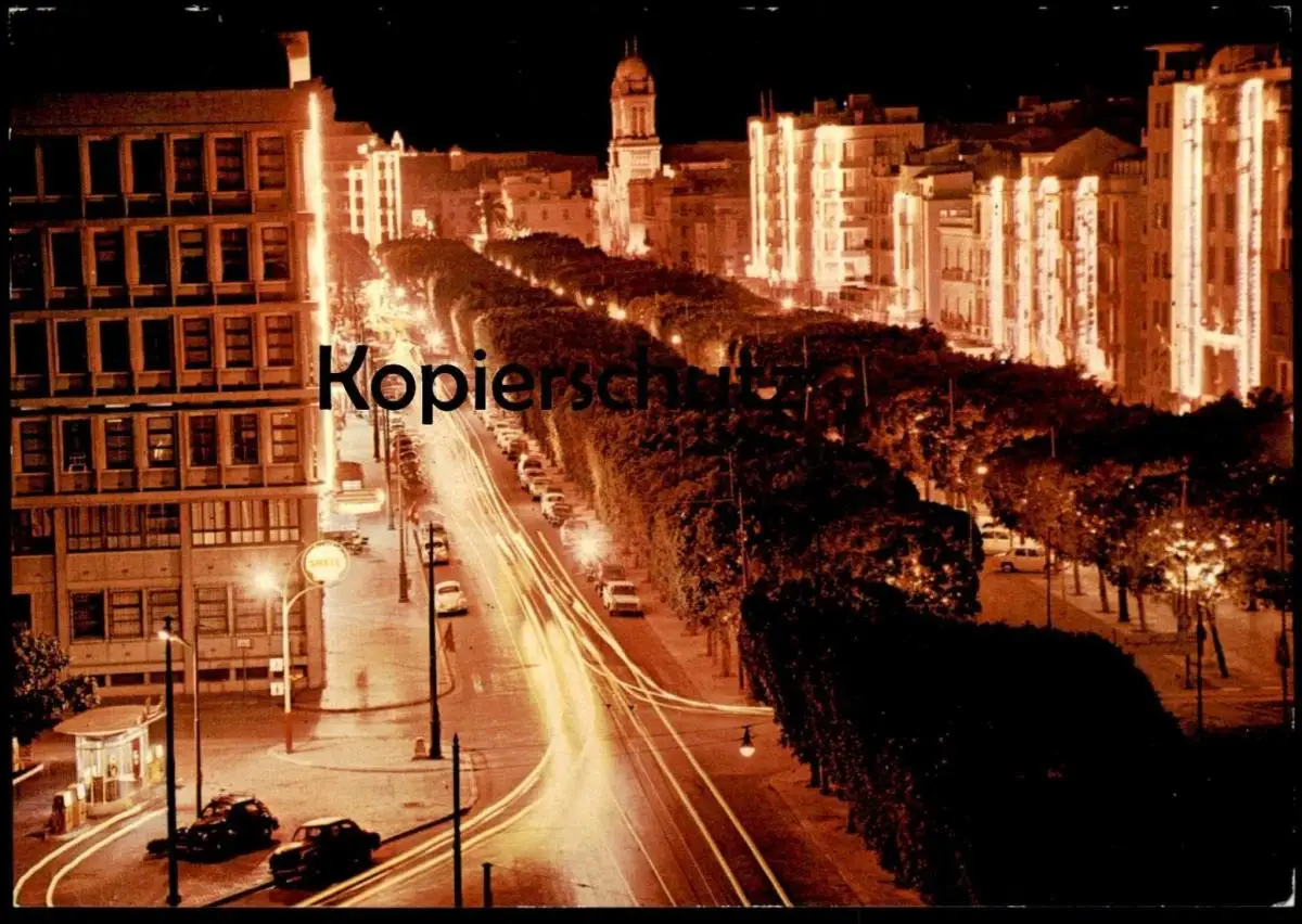 ÄLTERE POSTKARTE TUNIS AVENUE BOURGUIBA SHELL Tankstelle filling station service nuit by night Tunisia Tunisie Tunesien