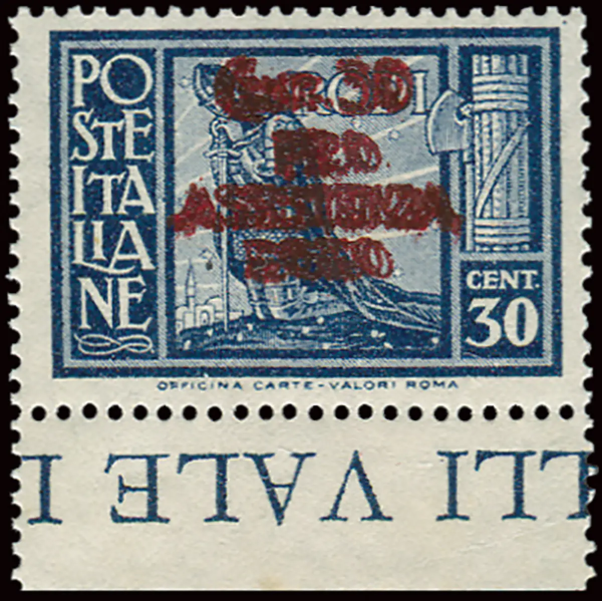 Ägäis Occ. Deutsch - Pro Assistance Cent. 30 Doppelaufdruck Vollgummi MNH - Ägäis Occ. Deutsch - Pro Assistance Cent. 30 n. 122b Doppelaufdruck b. von f. - sehr gut, gut zentriert - Selten - Kat. 360 Cod. 941/15