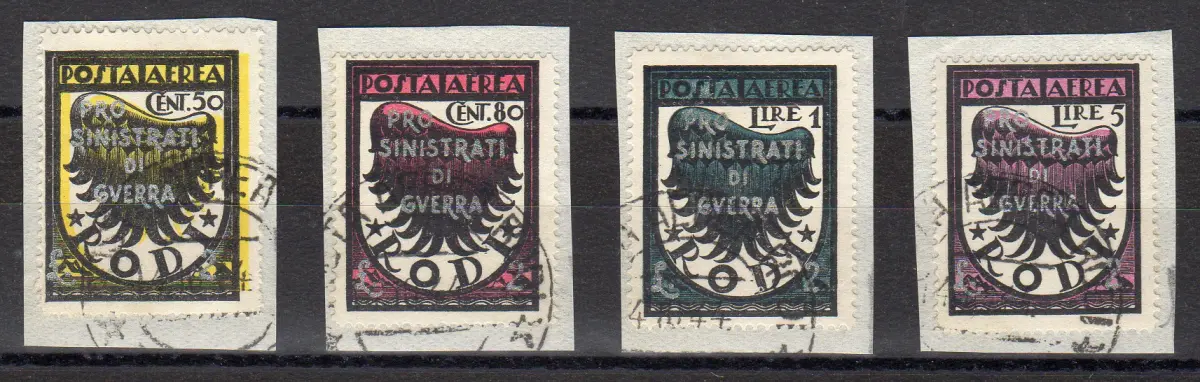 Ägäis Occ. Deutsch - Pro Linke Luftpost Originalstempel Serie Gebraucht - Ägäis Pro Linke komplette Serie Luftpost mit Silberaufdruck (Sass. n. 56/59) gebraucht auf Fragment - Originalstempel, hoher Wert signiert Raybaudi - sehr gute Qualität Cod. 1025/WEB