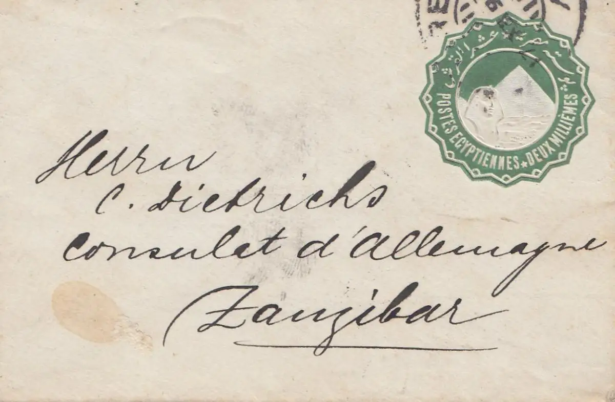 Ägypten/Egypte: 1894: Ganzsache Cairo nach Zansibar