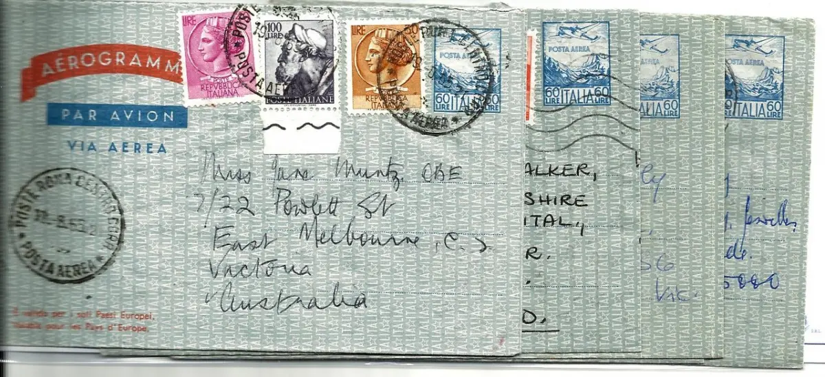 Aerogramma Lire 60 Aereo e Alpi Nr. A 3 - Aerogramma Lire 60 Aereo e Alpi Nr. A 3 - Lot von fünf verschiedenen Aerogrammen mit Zusatzfrankatur, 1 für England und 4 für Australien - Schönes Set Nr. 1167/5