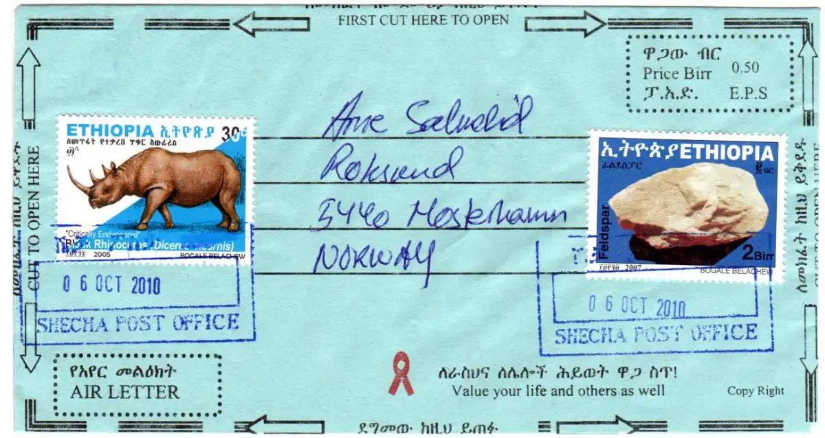 Äthiopien, 0,50 B. Aerogramm Ganzsache m. Zusatzfrankatur v. Secha n. Norwegen