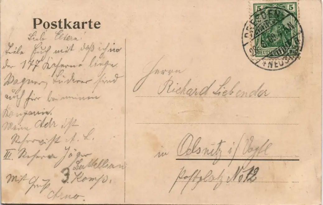 Äußere Neustadt-Dresden Kaserne d. II. Bataillon, Strassen Ansicht 1909