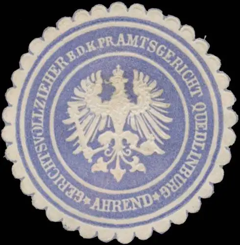 Ahrend Gerichtsvollzieher b. d. K. Pr. Amtsgericht Quedlinburg