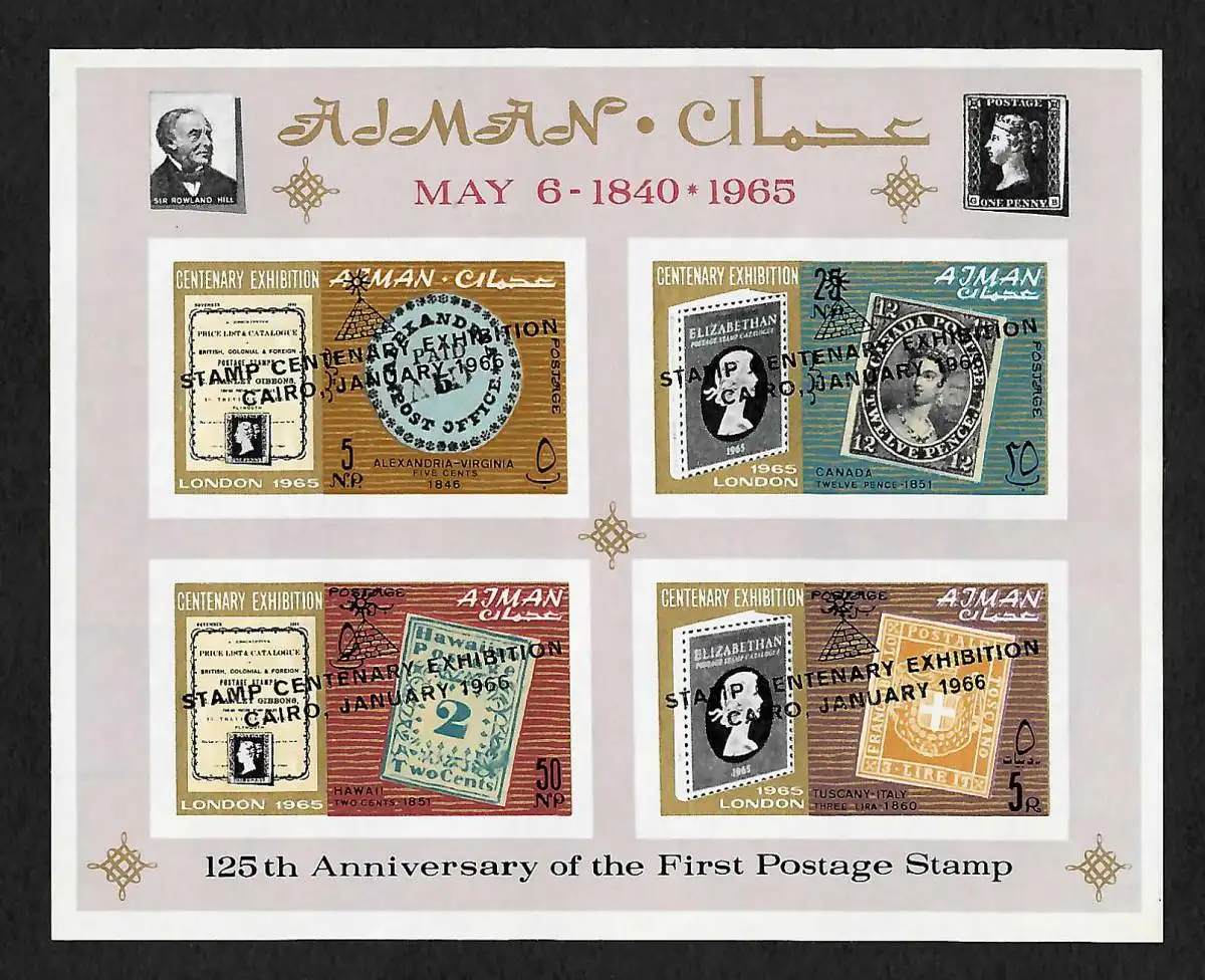 Ajman: 125th Anniversary of the first postage Stamp, Block not perforated, mnh