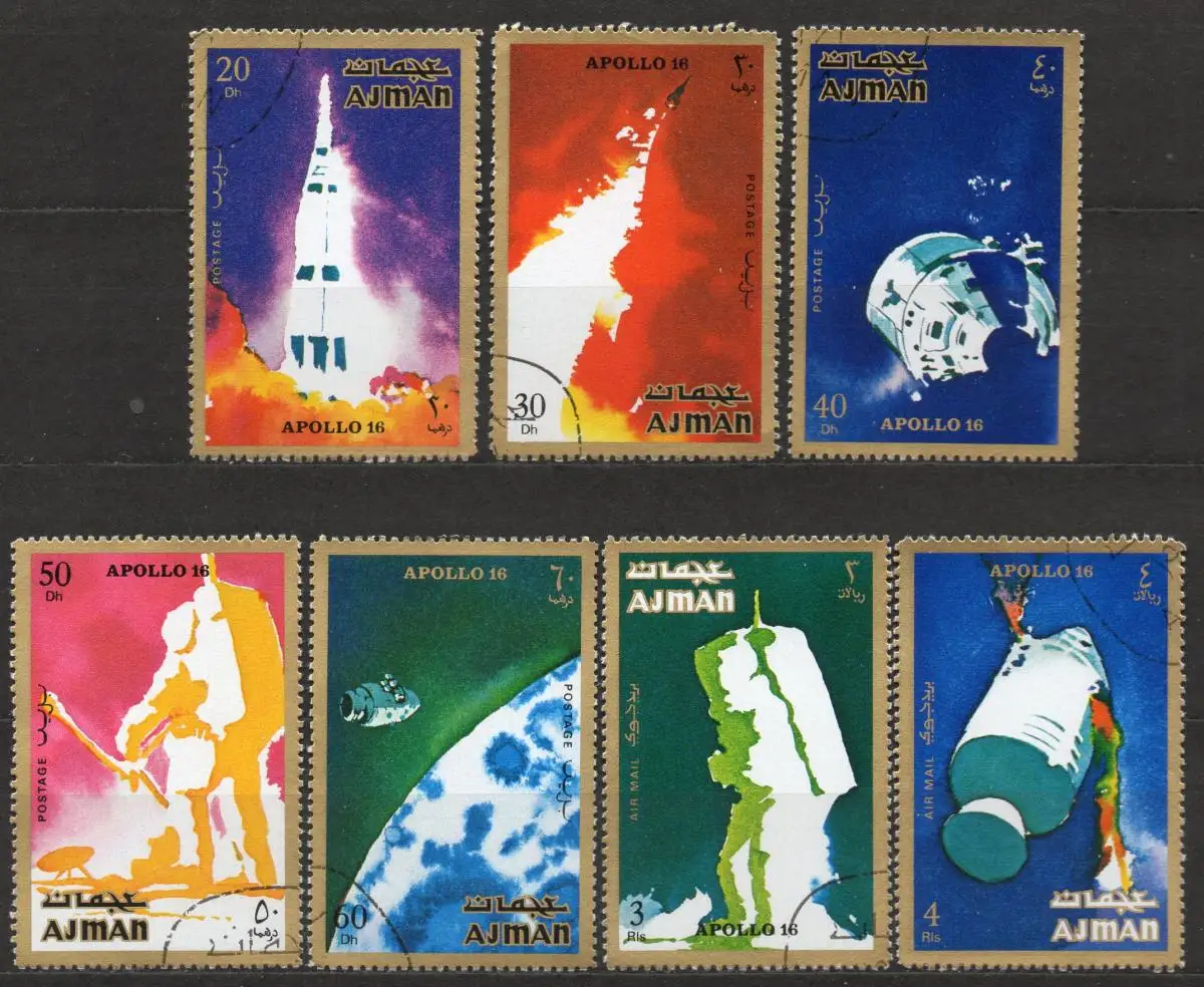 Ajman, Mi-Nr. 1014 - 1020 gest., kompl., Raumfahrt Apollo 16