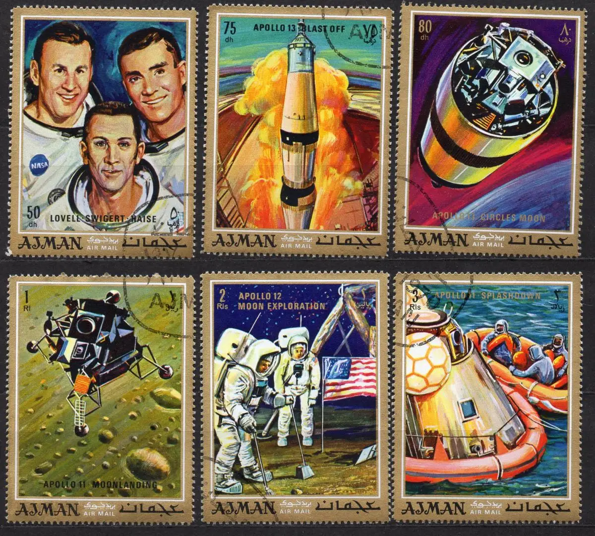 Ajman, Mi-Nr. 561 - 566 gest., kompl., Raumfahrt Apollo-Programm