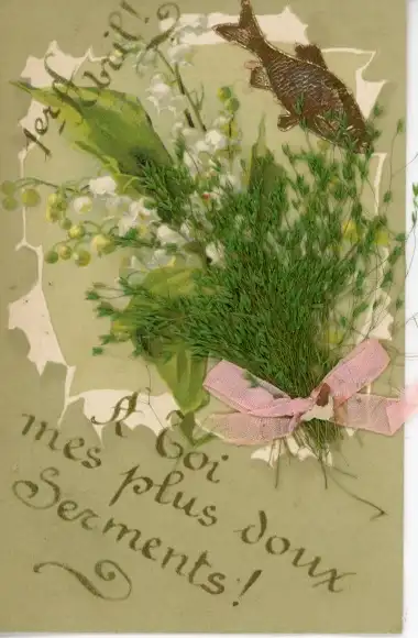 Ak 1. April, Fisch, Maiglöckchen