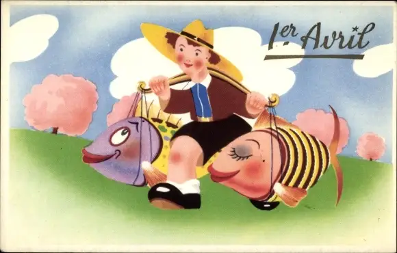 Ak 1. April, Junge trägt große Fische