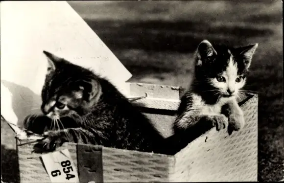 Ak 2 junge Katzen, in einem Korb sitzend
