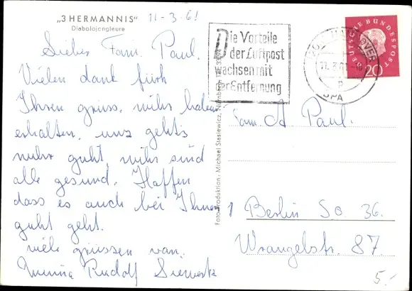 Zustand, siehe Scan, gelaufen, 1961 - ca 15 cm X 11 cm