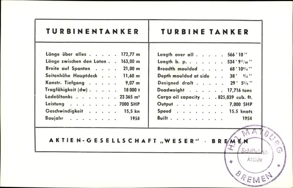 Ak AG Weser Bremen, Turbinentanker Atlantic Viscount