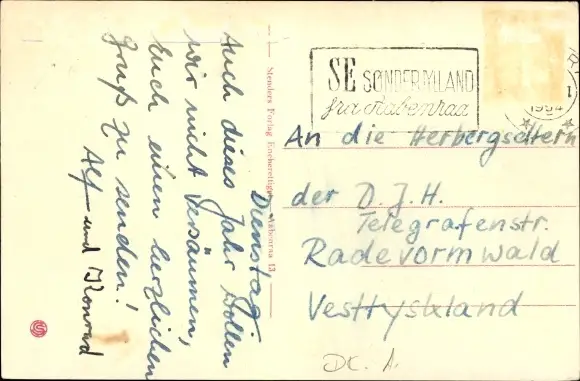 gelaufen 1954, Briefmarke entfernt, Stempelspur, sonst guter Zustand