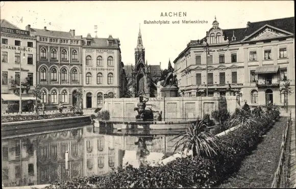 Ak Aachen, Bahnhofplatz, Marienkirche