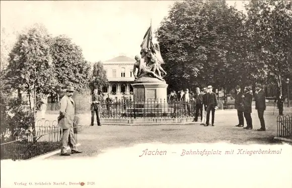 Ak Aachen, Bahnhofsplatz, Kriegerdenkmal