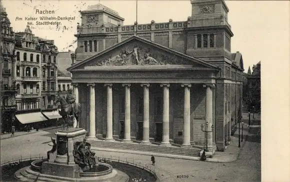 Ak Aachen, Kaiser Wilhelm Denkmal, Stadttheater