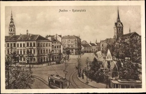 Ak Aachen, Kaiserplatz, Straßenbahnen
