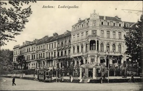 Ak Aachen, Ludwigsallee, Restauration, Straßenbahn