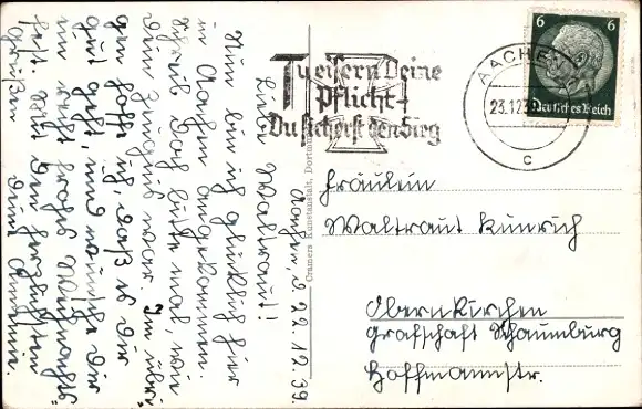 Zustand, siehe Scan, gelaufen, 1939 - ca 14 cm X 9 cm