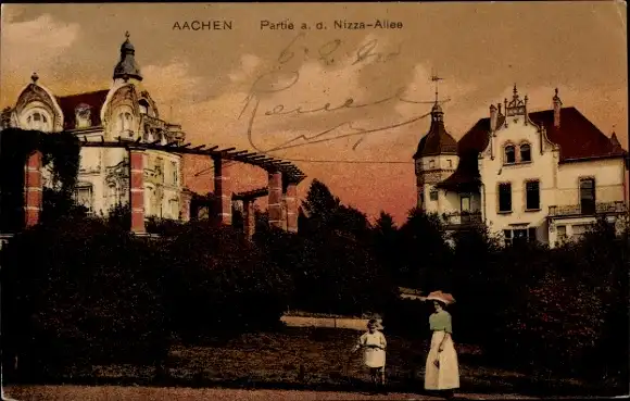 Ak Aachen, Nizza-Allee, Frau mit Hut, Kind