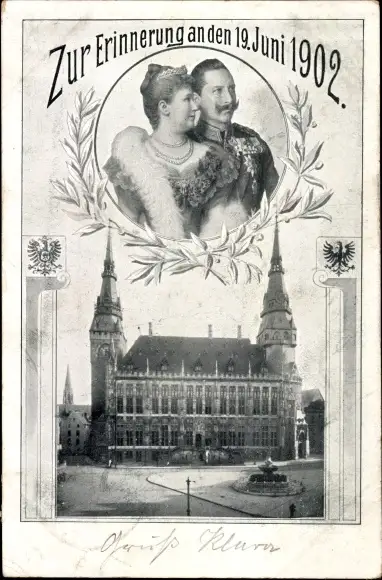 Ak Aachen Rathaus, Kaiser Wilhelm II., Kaiserin Auguste Viktoria