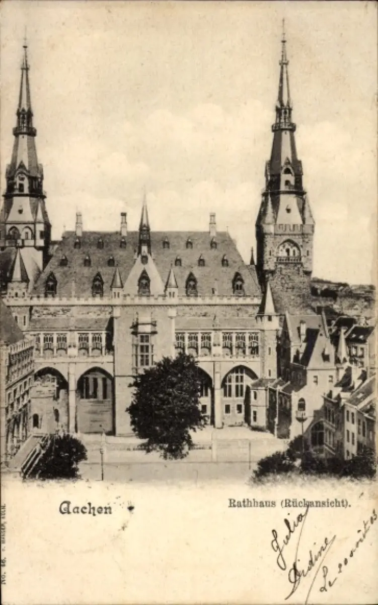 Ak Aachen, Rathaus, Rückansicht