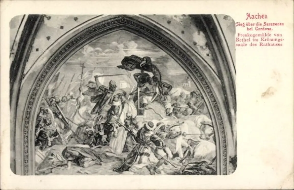 Ak Aachen, Sieg über die Sarazenen, Freskogemälde von Rethel, Krönungssaal, Aachen