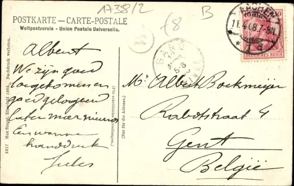 Zustand, siehe Scan, gelaufen, 1908 - ca 14 cm X 9 cm
