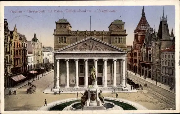 Ak Aachen, Theaterplatz, Kaiser Wilhelm-Denkmal, Stadttheater