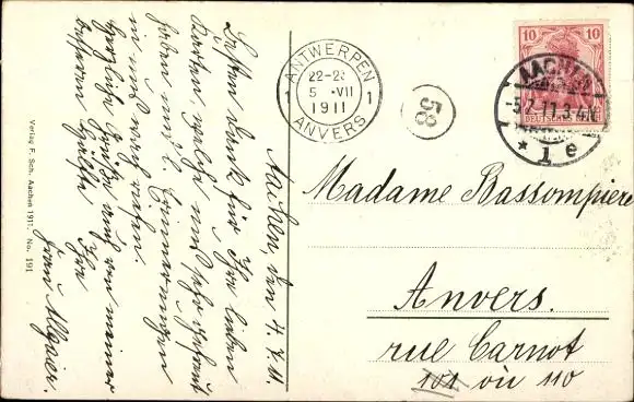 Zustand, siehe Scan, gelaufen, 1911 - ca 5 cm X 3 cm