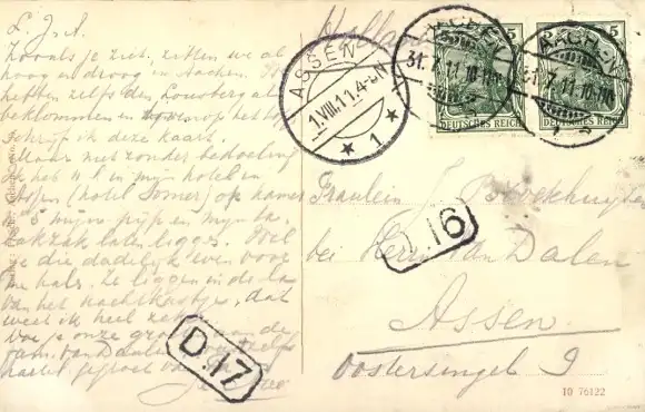 Zustand, siehe Scan, gelaufen, 1911 - ca 14 cm X 9 cm