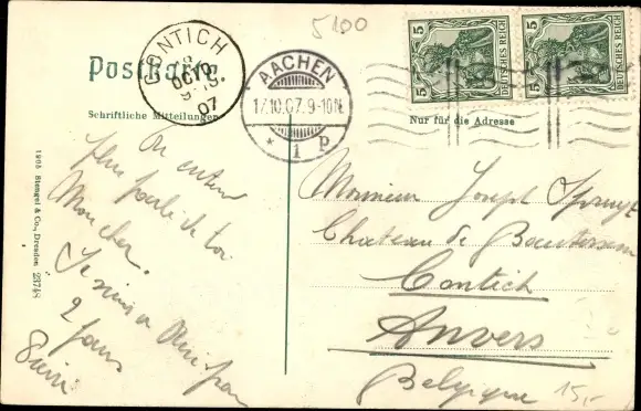 Zustand, siehe Scan, gelaufen, 1907- Stengel 23748 - ca 14 cm X 9 cm