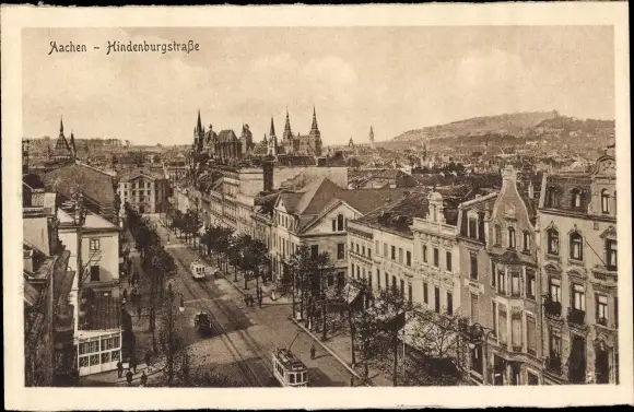 Ak Aachen in Nordrhein Westfalen, Hindenburgstraße, Straßenbahn, Stadtpanorama