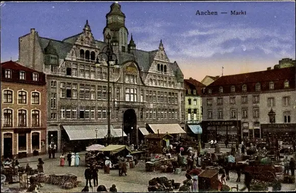 Ak Aachen in Nordrhein Westfalen, Markt, Marktstände