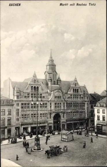 Ak Aachen in Nordrhein Westfalen, Markt mit Neubau Tietz