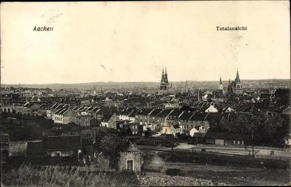 Ak Aachen in Nordrhein Westfalen, Totalansicht mit Kirchtürmen