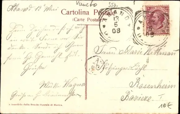 Zustand, siehe Scan, gelaufen, 1908 - ca 14 cm X 9 cm