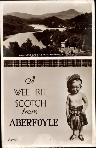 Ak Aberfoyle Perthshire Schottland, Loch and Queen's View, Junge im Kilt