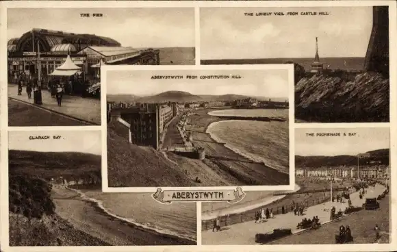 Ak Aberystwyth Wales, Pier, Promenade, Clarach Bay