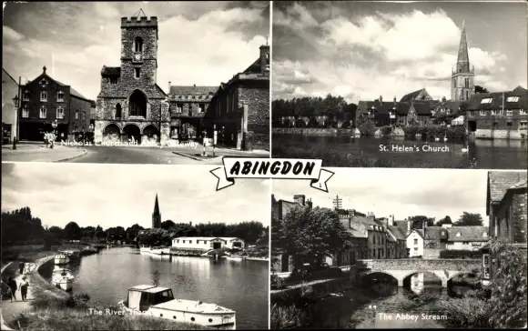 Ak Abingdon on Thames Oxfordshire England, Nicholas Church, St. Helen's Church, The Abbey Stream