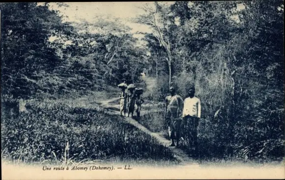 Ak Abomey Dahomey Benin, Afrikaner auf einem Weg, Landschaft
