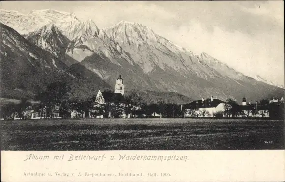 Ak Absam in Tirol, Teilansicht mit Bettelwurf- und Walderkammspitzen